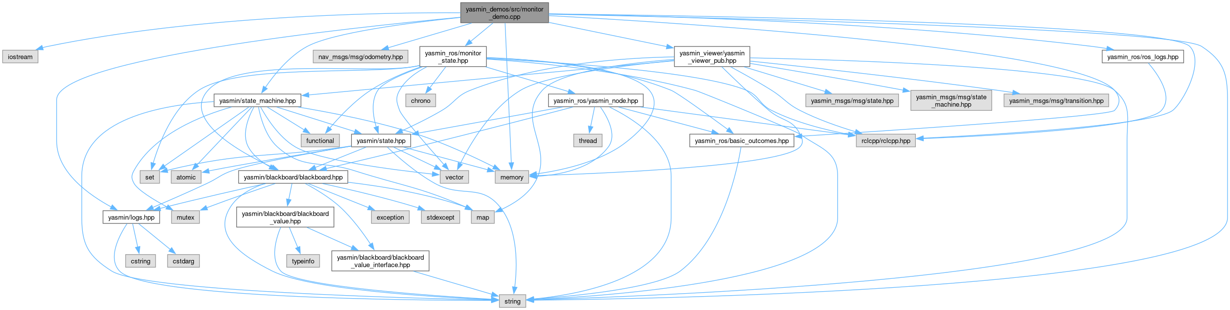 #include <iostream>#include <memory>#include <string>#include "nav_msgs/msg/odometry.hpp"#include "rclcpp/rclcpp.hpp"#include "yasmin/logs.hpp"#include "yasmin/state_machine.hpp"#include "yasmin_ros/basic_outcomes.hpp"#include "yasmin_ros/monitor_state.hpp"#include "yasmin_ros/ros_logs.hpp"#include "yasmin_viewer/yasmin_viewer_pub.hpp"