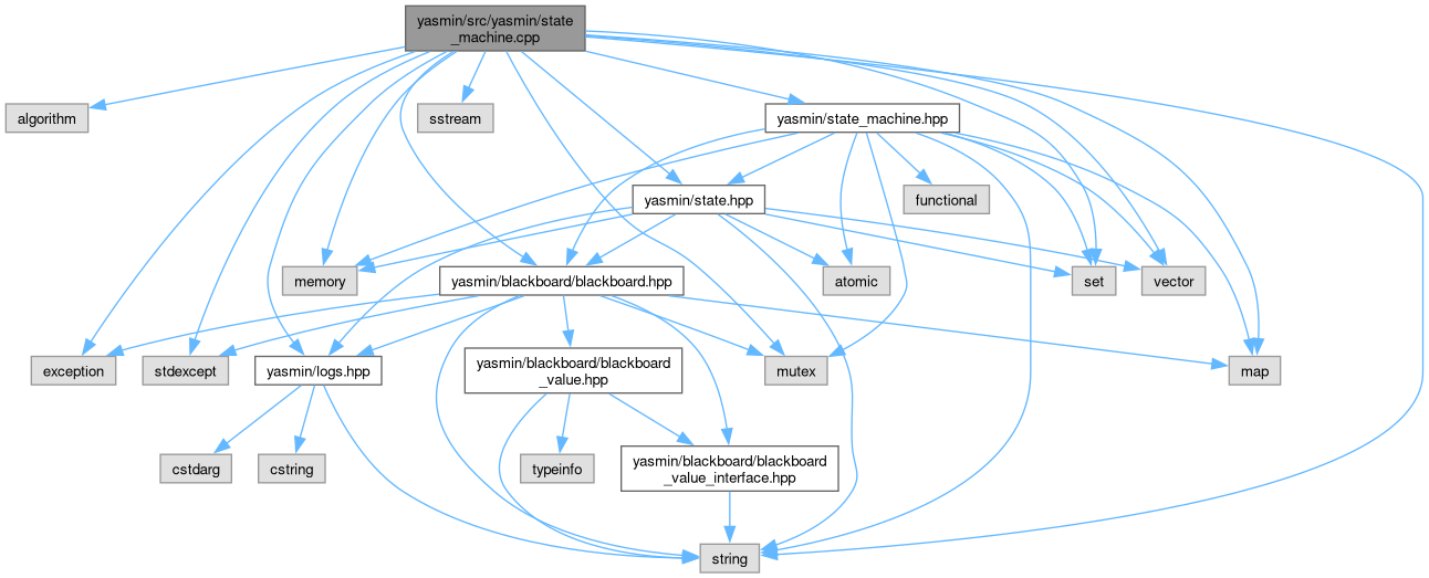 #include <algorithm>#include <exception>#include <map>#include <memory>#include <mutex>#include <set>#include <sstream>#include <stdexcept>#include <string>#include <vector>#include "yasmin/blackboard/blackboard.hpp"#include "yasmin/logs.hpp"#include "yasmin/state.hpp"#include "yasmin/state_machine.hpp"