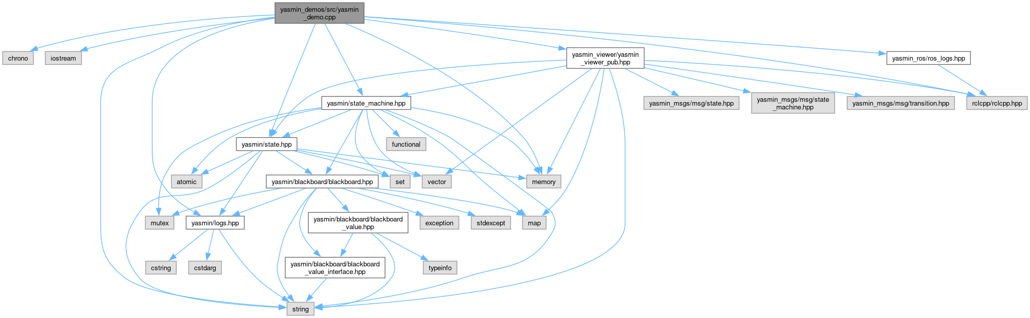 #include <chrono>#include <iostream>#include <memory>#include <string>#include "rclcpp/rclcpp.hpp"#include "yasmin/logs.hpp"#include "yasmin/state.hpp"#include "yasmin/state_machine.hpp"#include "yasmin_ros/ros_logs.hpp"#include "yasmin_viewer/yasmin_viewer_pub.hpp"