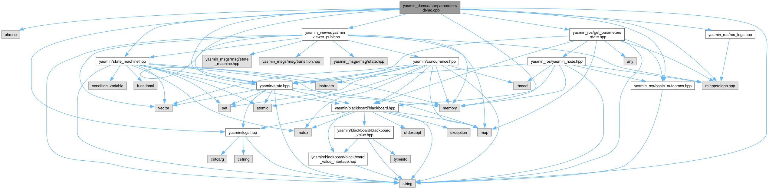 #include <chrono>#include <iostream>#include <memory>#include <string>#include "rclcpp/rclcpp.hpp"#include "yasmin/logs.hpp"#include "yasmin/state.hpp"#include "yasmin/state_machine.hpp"#include "yasmin_ros/basic_outcomes.hpp"#include "yasmin_ros/get_parameters_state.hpp"#include "yasmin_ros/ros_logs.hpp"#include "yasmin_viewer/yasmin_viewer_pub.hpp"