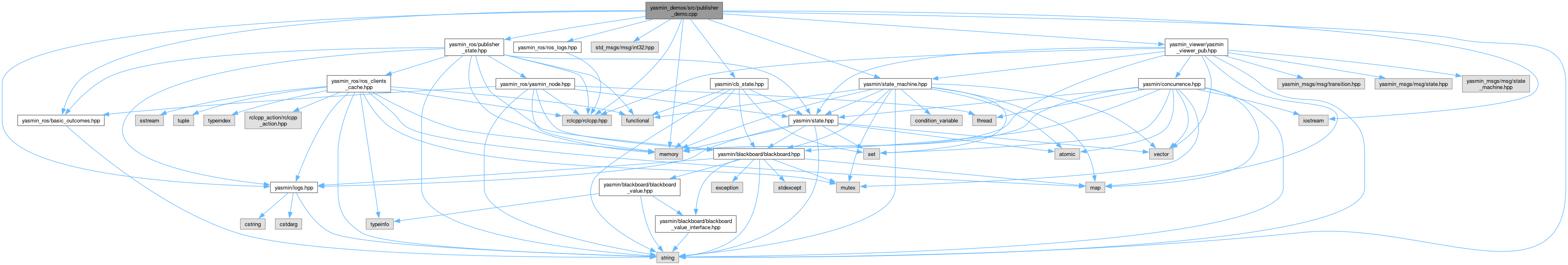 #include <iostream>#include <memory>#include <string>#include "rclcpp/rclcpp.hpp"#include "std_msgs/msg/int32.hpp"#include "yasmin/cb_state.hpp"#include "yasmin/logs.hpp"#include "yasmin/state_machine.hpp"#include "yasmin_ros/basic_outcomes.hpp"#include "yasmin_ros/publisher_state.hpp"#include "yasmin_ros/ros_logs.hpp"#include "yasmin_viewer/yasmin_viewer_pub.hpp"