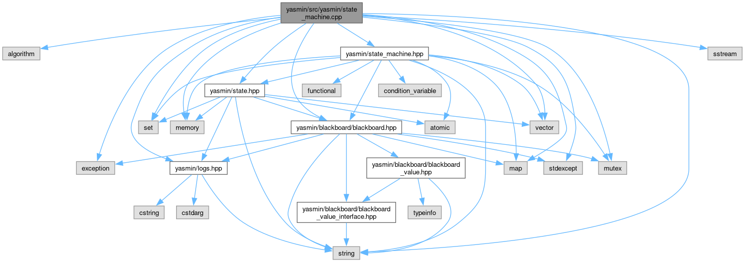 #include <algorithm>#include <exception>#include <map>#include <memory>#include <mutex>#include <set>#include <sstream>#include <stdexcept>#include <string>#include <vector>#include "yasmin/blackboard/blackboard.hpp"#include "yasmin/logs.hpp"#include "yasmin/state.hpp"#include "yasmin/state_machine.hpp"