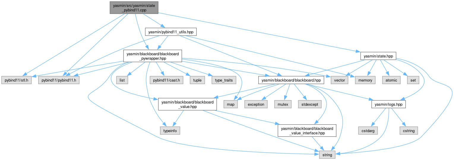 #include <pybind11/pybind11.h>#include <pybind11/stl.h>#include "yasmin/blackboard/blackboard_pywrapper.hpp"#include "yasmin/pybind11_utils.hpp"#include "yasmin/state.hpp"
