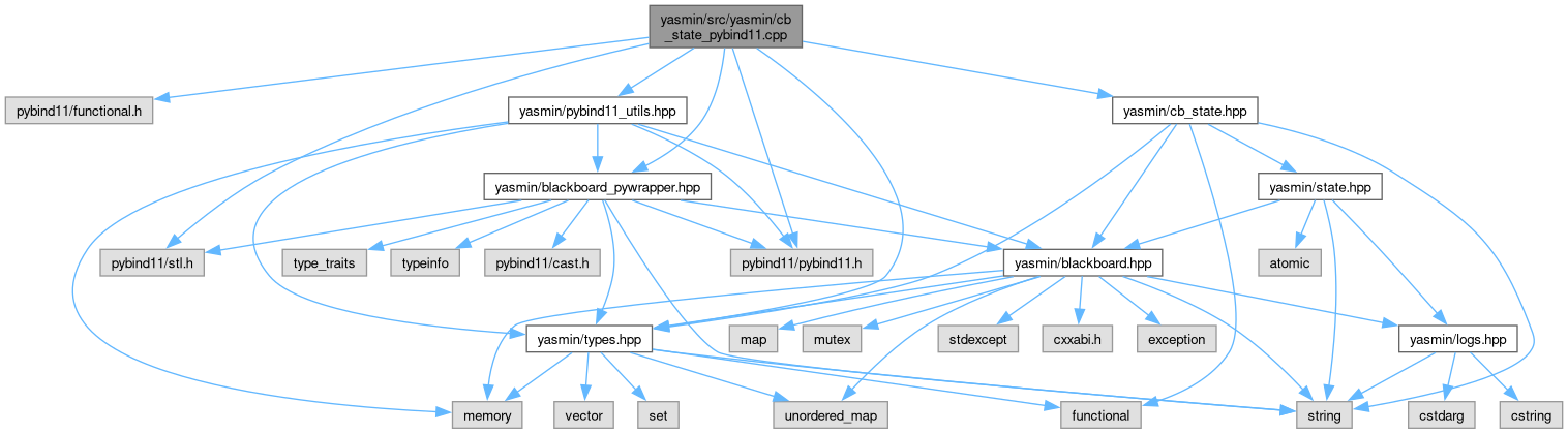#include <pybind11/functional.h>#include <pybind11/pybind11.h>#include <pybind11/stl.h>#include "yasmin/blackboard_pywrapper.hpp"#include "yasmin/cb_state.hpp"#include "yasmin/pybind11_utils.hpp"#include "yasmin/types.hpp"