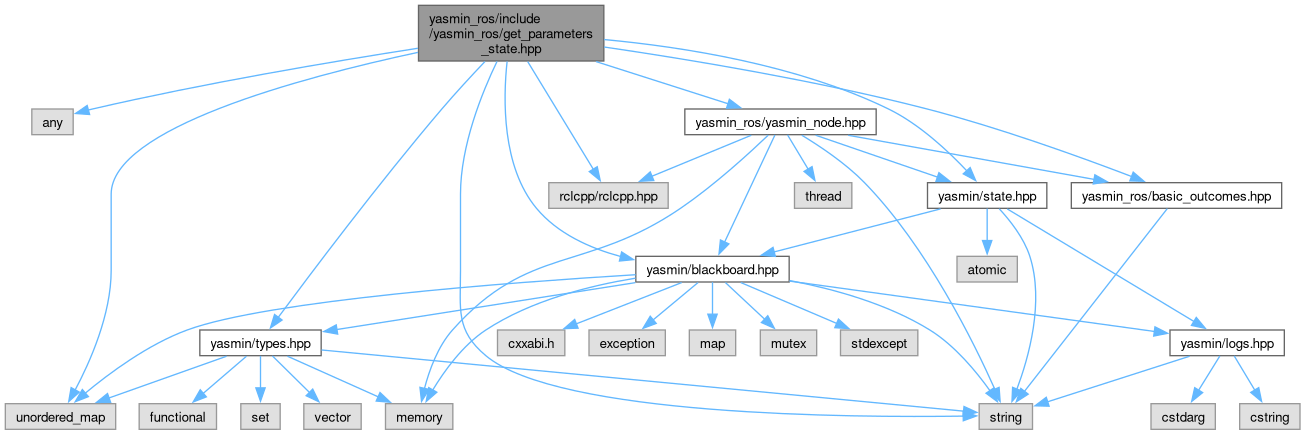 #include <any>#include <string>#include <unordered_map>#include "rclcpp/rclcpp.hpp"#include "yasmin/blackboard.hpp"#include "yasmin/state.hpp"#include "yasmin/types.hpp"#include "yasmin_ros/basic_outcomes.hpp"#include "yasmin_ros/yasmin_node.hpp"