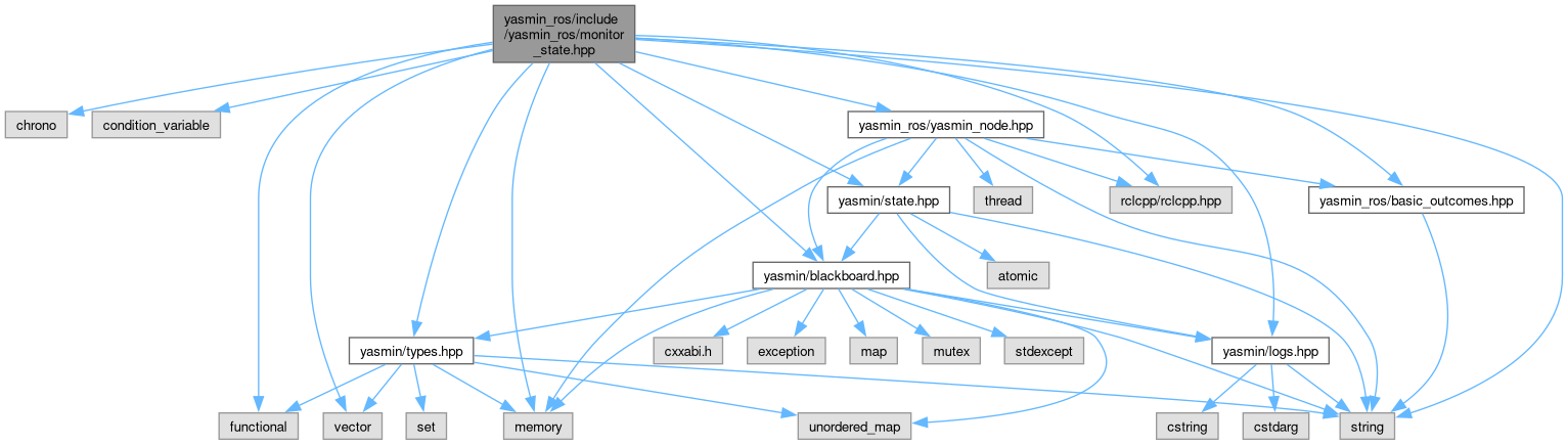 #include <chrono>#include <condition_variable>#include <functional>#include <memory>#include <string>#include <vector>#include "rclcpp/rclcpp.hpp"#include "yasmin/blackboard.hpp"#include "yasmin/logs.hpp"#include "yasmin/state.hpp"#include "yasmin/types.hpp"#include "yasmin_ros/basic_outcomes.hpp"#include "yasmin_ros/yasmin_node.hpp"